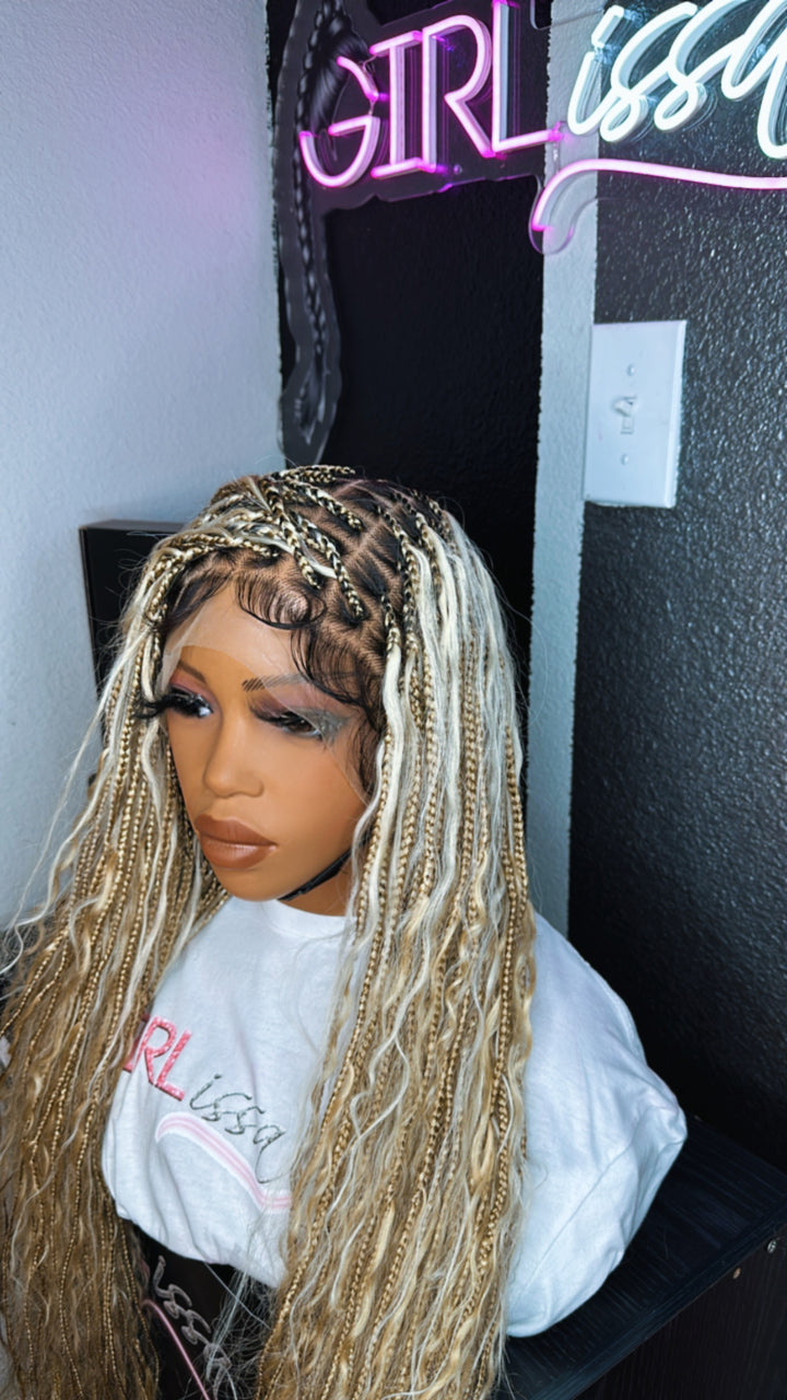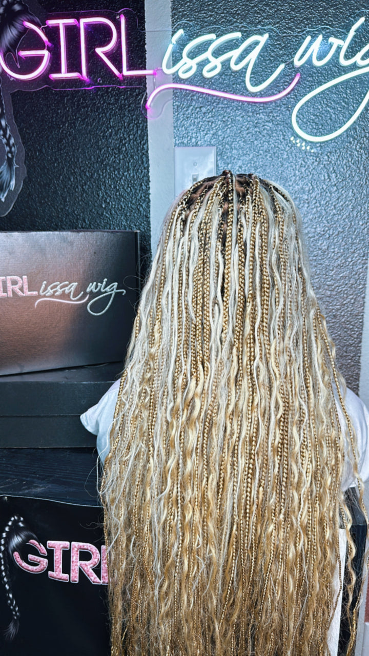 Meet Summer—the ultimate boho braid wig that brings effortless luxury to your look. This handcrafted beauty blends the natural appeal of knotless braids with full, voluminous human hair curls for a flawless, free-flowing finish. Available in two premium options: